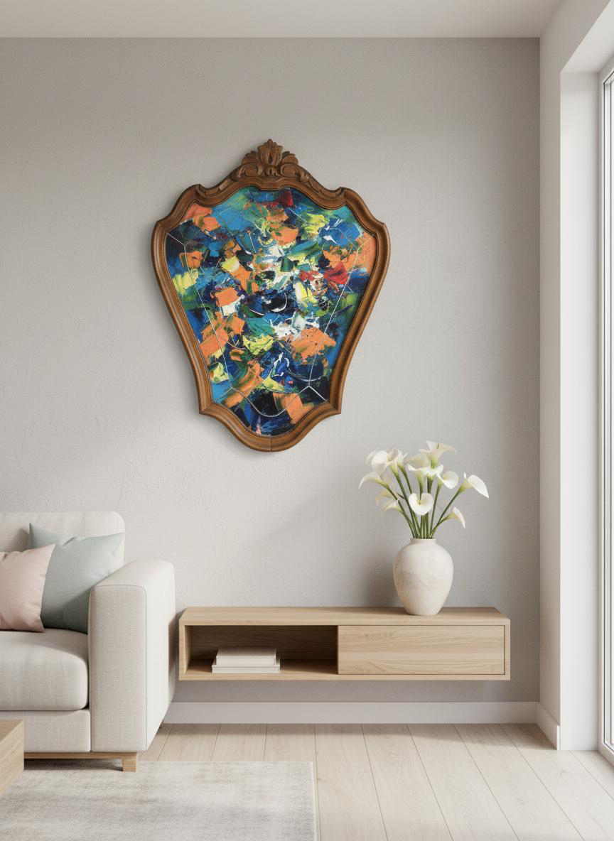 Reinterpretamos espejos y marcos antiguos para transformarlos en cuadros personalizados. Piezas con historia que adquieren una nueva vida a través del diseño, el color y la composición, convirtiéndose en objetos únicos para espacios que buscan algo diferent